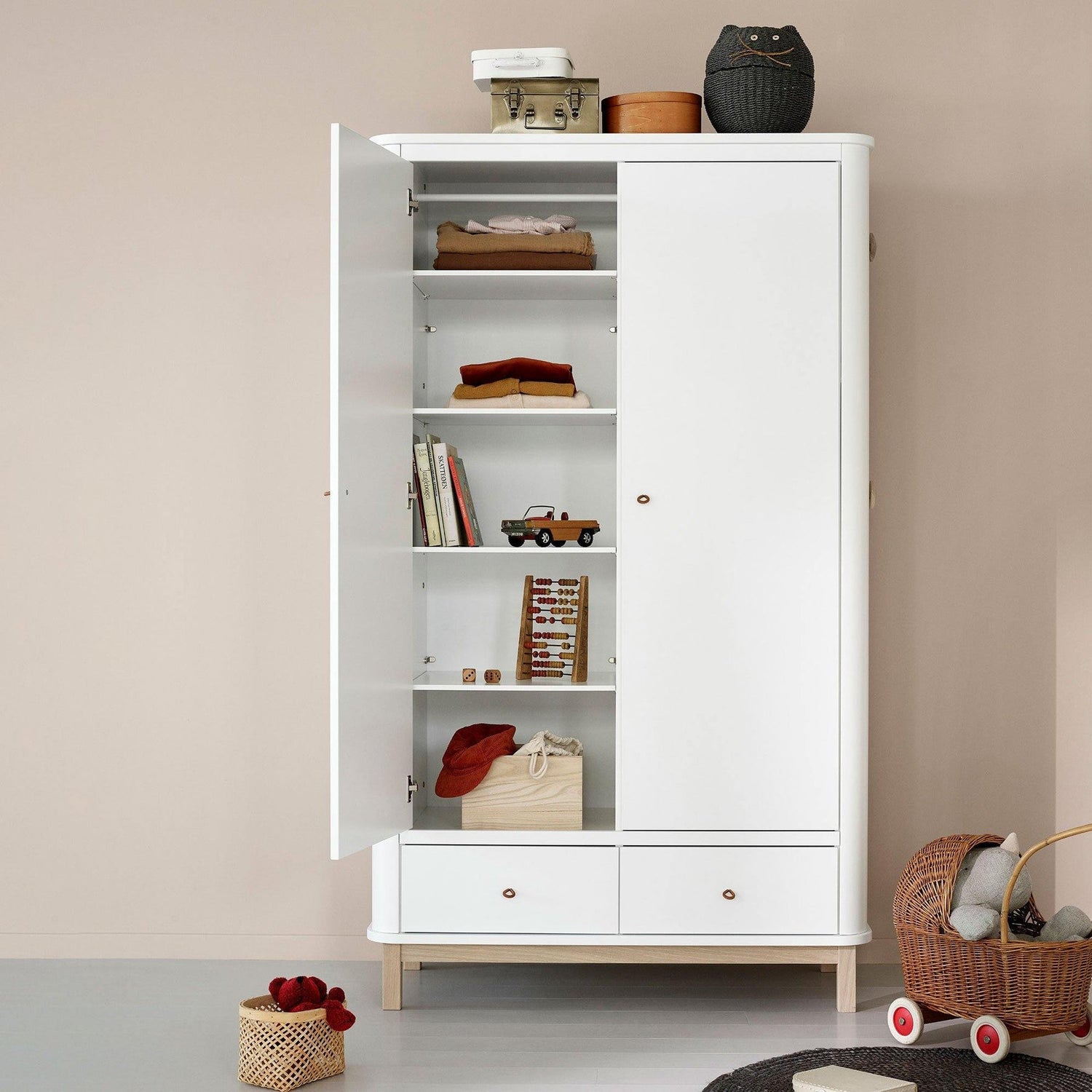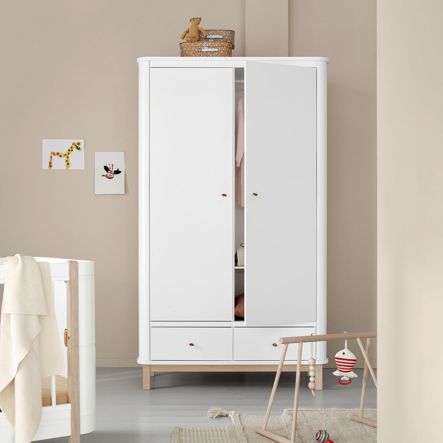 Armadio 2 ante Wood, Bianco/rovere