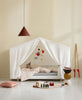 La tenda è realizzata in morbido cotone biologico e conferisce al letto un aspetto caldo e accogliente. Perfetta sia per sognare ad occhi aperti che per giocare durante il giorno, così come per i momenti di tranquillità prima di coricarsi. Può essere chiusa completamente per creare un piccolo rifugio o legata ai lati per creare uno spazio invitante per il gioco e il relax. Due finestre rotonde, una ai piedi del letto e una sul tetto, possono essere aperte e chiuse a seconda delle necessità.